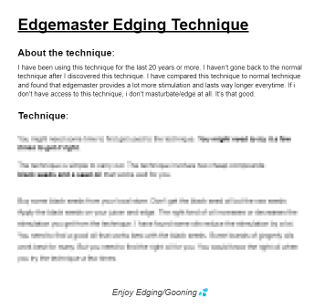 Full access to the new edgemaster edging/gooning technique for men.